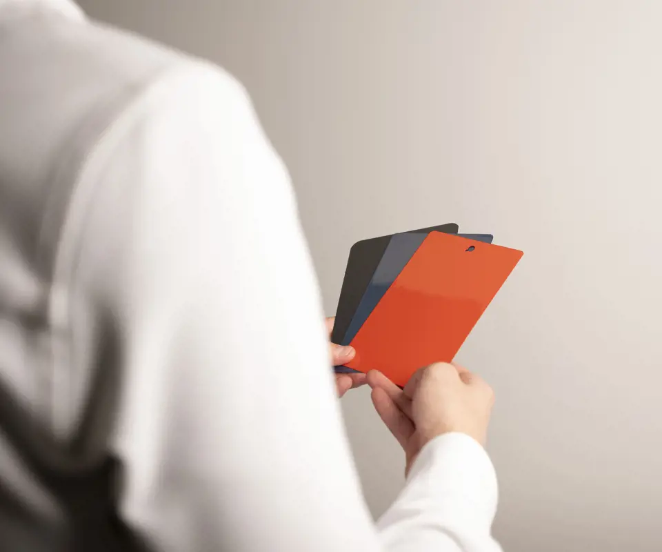 Aplicamos sus colores por pulverización o por recubrimiento en diferentes soportes (metal, papel), mediante aplicación manual o automática, para la creación de sus paneles estándar.
